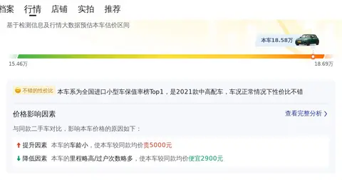 MINI 2021款 2.0T COOPER S 赛车手,新车含税价为31.89万,而现在的二手车报价是18.58万,2021年10月首次上牌,在此期间过户1次。