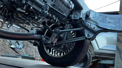 目前市面上比较常见的电四驱车型,后悬部分一般都会采用独立悬架,由于要匹配体积较大的电机,而且要考虑到不侵占舱内空间,做成整体桥结构较难平衡这两点,不过Hi4-Z架构依旧保留了Hi4-T的同款五连杆整体桥式,一方面是保证了悬架行程,另一方面则是具备更强的结构强度和乘载能力。