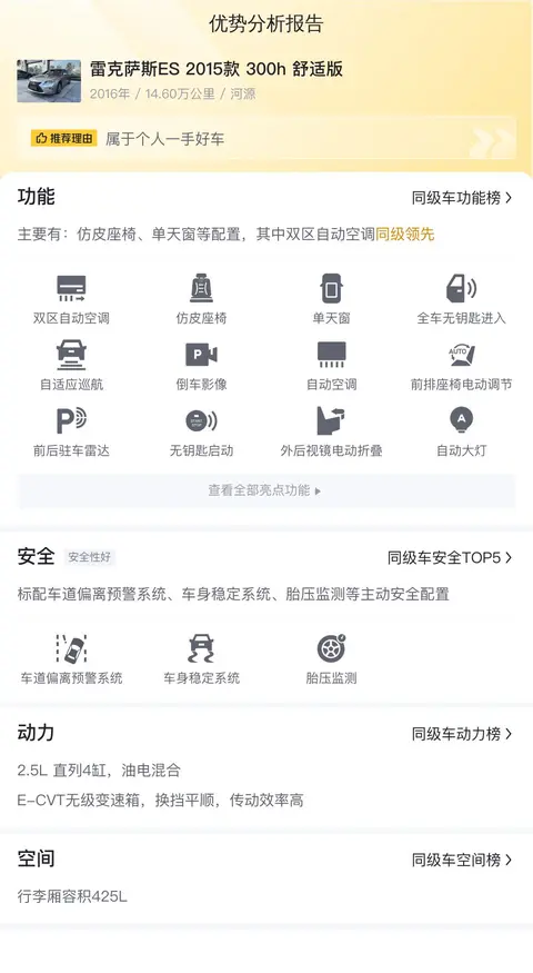 报价低于市场行情,雷克萨斯ES 2015款 300h 舒适版的市场行情价是13.98万-16.84万,它的报价则是13.98万,价格上有很大优势,同时保值率也高。