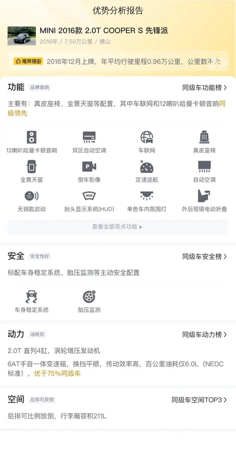 这辆二手MINI 2016款2.0T COOPER S先锋派拥有多项亮点配置,不仅提升了驾驶的便捷性,还增加了行车的安全性。以下是其中的一些关键配置: