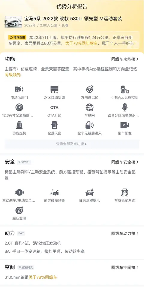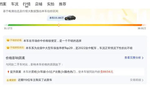综上所述的新车含税价、用车成本、市场行情、优势分析、同款比价等数据仅供参考。在配置部分,因为二手车非标品,车辆可能会存在配置改装的情况,具体车况信息需要线下结合车辆实际情况进行综合参考。