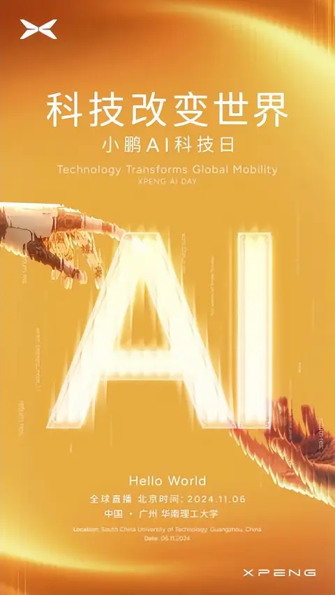 站在新十年的起点上,小鹏汽车致力于成为一家面向全球的AI汽车公司。今日,小鹏汽车董事长 CEO何小鹏正式宣布“小鹏1024科技日”正式升级为“小鹏AI科技日”,并将在华南理工大学举办。小鹏汽车将以全球直播的形式,分享小鹏在AI汽车、AI机器人以及飞行汽车等领域的成果,与全世界的鹏友们一起感受科技的魅力。