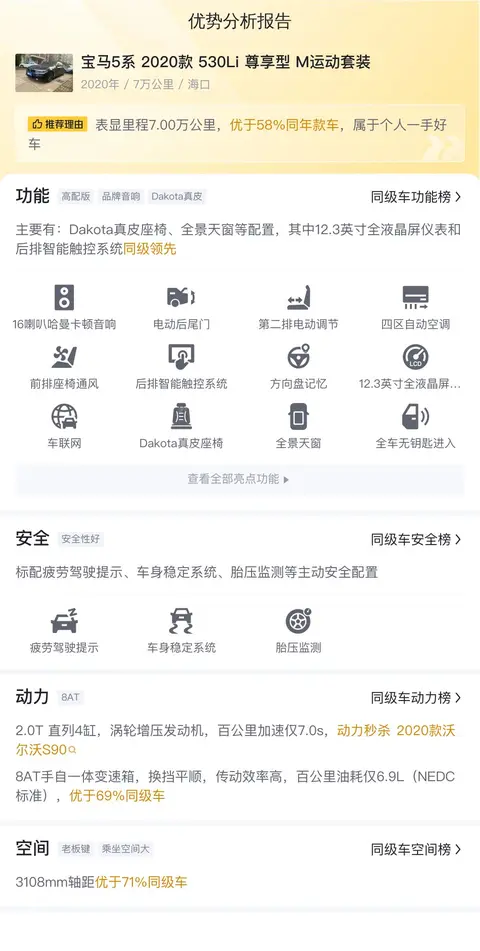 该车的具体版本是——宝马5系 2020款 530Li 尊享型 M运动套装。该车于2020年10月在海口上牌,至今行驶里程为7万公里,0过户,属于一手车。今天要说的这台二手宝马5系报价为27.98万,相比新车指导价来说便宜了22.71万。