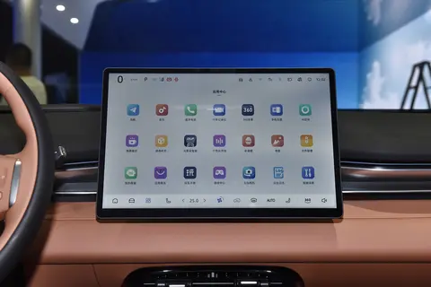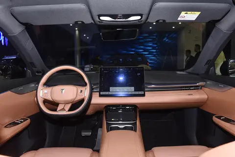 内饰设计简约且富有科技感,中控台没有配备物理实体按键,搭配隐藏式空调出风口,整个中控台区域看上去更加简约整洁。皮质的三幅式平底方向盘,握感细腻舒适,加上镀铬元素的加入,提升了内饰的质感。此外,车内还配备了全景天幕、手机无线充电、自动空调、氛围灯、PM2.5过滤装置等实用舒适性配置。
