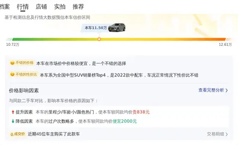 昂科威 2022款 昂科威S 552T 两驱豪华型的市场行情价是10.72万-12.61万,它的报价是11.50万,报价虽然合理,但优势不明显。