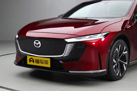 这款车为纯电动汽车,车头设计延续了马自达家族的“魂动”设计语言,采用封闭式前格栅设计。远近光灯均为 LED 光源,提供了出色的照明效果。日间行车灯设计独特,增加了车辆的辨识度。大灯还具备延时关闭功能,为用户在夜间停车后提供了便利。