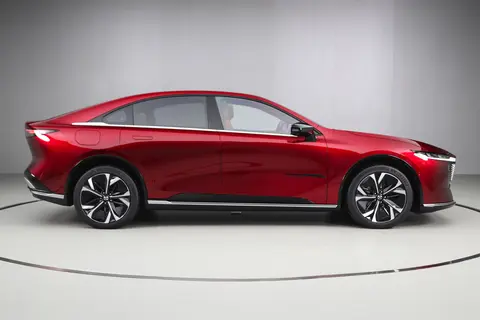 长4921mm、宽1890mm、高1485mm、轴距2895mm,侧面设计内容更加丰富,新能源市场惯用时尚元素基本都有配备,无框设计车门、隐藏式门把手为开端,提升侧面线条的平整顺畅之感,也略微增益车身降低风阻系数,在高速行车状态下可发挥更佳作用。除此之外,开启车门后还有迎宾灯效的响应,尤其是在夜间使用,淡淡的照明光泽方便补充光线,还能与隐藏式门把手一同提升车用仪式感,在工作、家庭的不断重复中,获取一些别样的感受。尾部添加内容更具个性化与动感气息,电动扰流板标配设计,可随使用需求电控调节,过往多见高端运动款式或超跑使用,档次提升力度也是不弱,应用于家用代步款式之上,车辆购置成本还控制在了20万级以内,对年轻受众的吸引力更大。