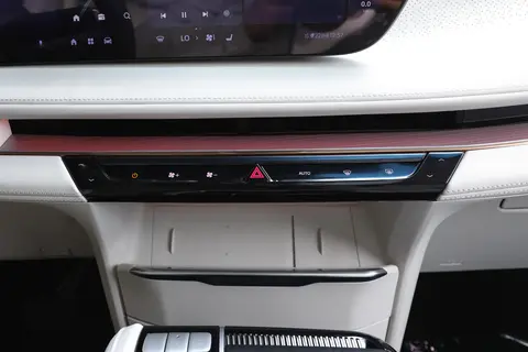 中控屏幕分辨率达到了6K。显示很清晰,强光下也不影响阅读。车机芯片是高通骁龙8155,系统流畅度有保证。功能方面,车联网,OTA升级,CarPlay手机互联映射和应用商店都标配。可以持续更新车机完善功能,也可以下载自己喜欢的应用。具备了扩展性。配备了前后排四区域语音识别支持连续识别和可见即可说等语言功能。开车的时候可以用语音系统控制车内各种功能,包括开车和开空调等。释放了双手,也提升了行车安全。