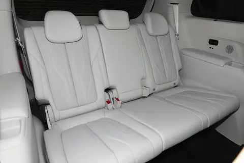 身高178cm的乘客来到这台车第三排,能明显感觉到第三排乘坐舒适性还是非常不错的,头部空间以及腿部空间都很充裕,接着来到这台车第二排,将第二排座椅调节至最靠前位置,腿部空间能剩余两拳左右,如果将第二排座椅调节至最靠后位置,那么第二排腿部空间会很夸张