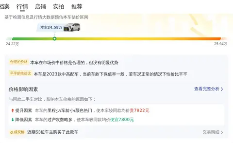 市场价格方面,传祺M8 2023款 宗师系列 2.0TGDI 旗舰版的市场价格在24.22-25.94万元,本文中的这辆二手车报价24.58万元,报价在合理的范围内。需要注意的是,车辆的实际成交价取决于很多因素,像使用年限、行驶里程、车辆保养状态等,这些都会对成交价格有影响。