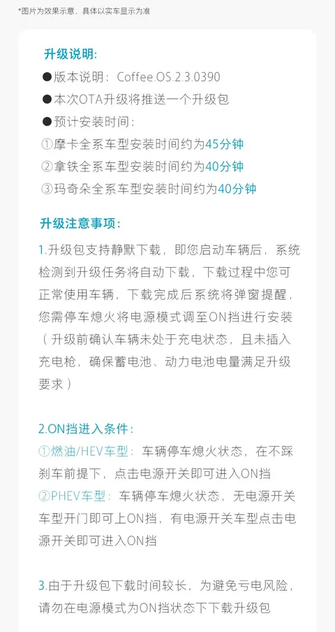 [懂车帝原创 产品] 日前,我们从魏牌官方获悉,摩卡/拿铁/玛奇朵系列车型迎来第九次OTA升级。本次OTA主要针对车机功能、交互、互联方面进行升级,版本号为Coffee.OS.2.3.0390,预计摩卡全系车型安装时间为45分钟,拿铁全系车型安装时间为40分钟,玛奇朵全系车型安装时间约为40分钟。