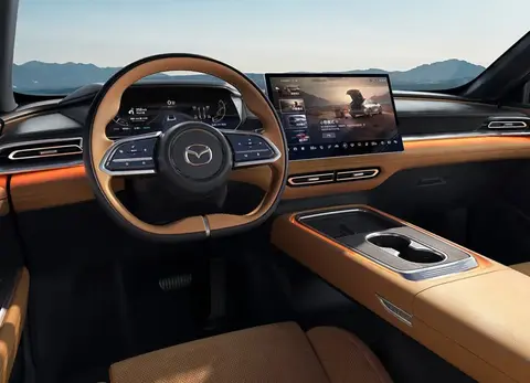 内饰方面,马自达EZ-6也采用了目前新能源车非常主流的简约风格,和中控大屏+仪表屏的布局,不过它的内饰设计并没有给人刻意跟风的感觉,而这背后有两个原因。