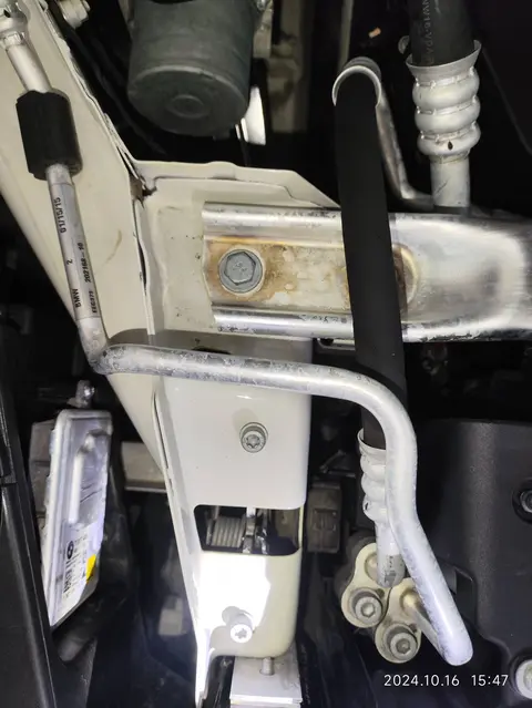 继续往下看,我们会看到在事故检测排查中,水箱框架有拆卸痕迹,左B柱封边有划痕。