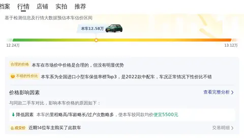根据懂车帝平台的数据,目前这款二手MINI的市场价格大约在12.24万到13.12万之间,卖家报价12.58万,价格比较合理。从投资的角度来看,这款MINI的保值率比较高,未来几年内价格相对会比较稳定,可以作为一个不错的投资选择。同时,这款车的时尚外观和精致内饰也让你在驾驶它的过程中能够吸引不少眼球,增加你的自信和魅力。综合考虑,如果你正在寻找一款时尚、精致、好玩的二手车,那么这款二手MINI无疑是一个不错的选择。