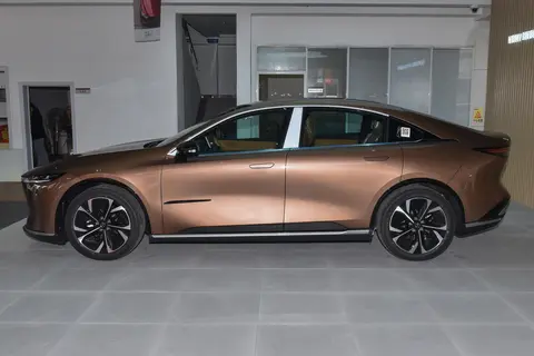 马自达EZ-6(品技术)的车身尺寸为4921mm×1890mm×1485mm,轴距为2895mm,定位于中型轿车市场。从侧面观察,车辆的线条锋利,与车门的内凹设计相结合,展现出强烈的力量感,同时配备了隐藏式门把手和无框车门。车辆前后轮胎规格均为245/45 R19,扁平比为45,强调了操控性能,轮毂设计为明暗双色花瓣样式。车尾设计为小鸭尾造型,与掀背式尾门相结合,展现出大气而流畅的外观,红色尾灯组贯穿整个尾部,延续了马自达的家族式设计。尾灯组与下包围的设计突出,内部区域呈现内凹效果。