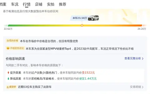这辆二手传祺M8 2023款 宗师系列 2.0TGDI 旗舰版,表显里程5.00万公里,上牌日期2023年3月,上牌地车源地均为乌鲁木齐,车身颜色黑色,过户次数0次。新车指导价28.98万,新车含税价31.69万,而现在的二手车报价为23.5万。
