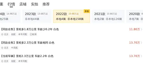 这辆奔驰A级 2022款 A 180 L是一辆前驱五座的紧凑型轿车,它的车源地和上牌地都是北京,2022年8月正式上牌,已经行驶了2.3万公里,有过一次过户记录,国六排放标准,白色车身深色内饰,皮织混搭座椅,全景天窗,车联网,新车指导价21.48万,现在二手售价13.7万。