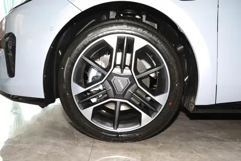 AION RT车身侧面为溜背式造型,前后包围、侧裙以及外后视镜等处进行了黑化处理,同时充电口位于车辆的右前翼子板处。AION RT使用新能源车型常见的电动隐藏式门把手,激光雷达版配备的是18英寸星锁铝合金轮辋,其他车型配备17英寸星曜铝合金轮辋,官方公布车辆的风阻系数为0.208。