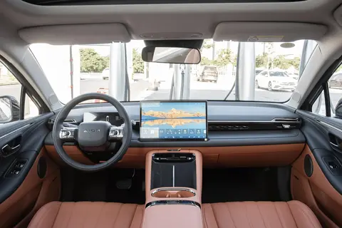 AION RT采用与第二代AION V相近的内饰设计,提供米/黑双色、橙/黑双色以及纯黑色等配色选择。车内配备了双辐式多功能方向盘以及怀挡式换挡杆,高配激光雷达版车型中央空调出风口下方还设置有手机无线充电面板。