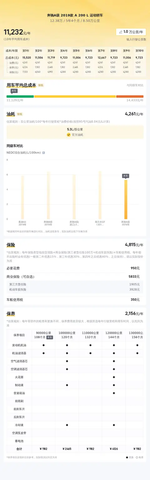 在用车成本这块儿,根据估算,这辆车的年均综合用车成本大概在每年1.1万元左右。这里要说的是,这些数据仅供参考,实际费用支出可能会根据车主个人的使用习惯和选择有所不同。