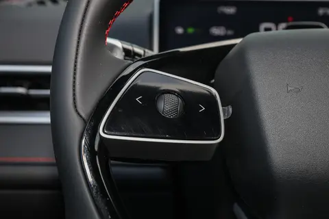 多功能平底方向盘上,两侧集成了各种功能按键,操作起来很方便。旁边就是电子挡把,换挡灵活又顺畅。8.9英寸的全液晶仪表,功能丰富,电驱装置的控制也一目了然。