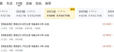 与之同款的二手车在全国有很多车源,我们通过分析这些车源的价格,可以得知市场最低价是12.37万,最高价是14.37万,而传祺M8 2021款 领秀系列 390T 尊享版的售价则是14.8万,比市场最低价高出了2000多,没有任何优势。