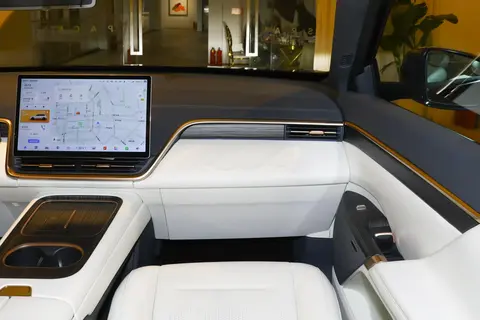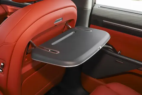 该车使用了仿皮材质的座椅,填充物柔软,手感良好,包裹性和支撑性都较好,尤其是舒适性表现较为出色,为乘客提供了舒适的乘坐体验。 第二排座椅电动调节功能齐全,右侧座椅为零重力座椅,支持一键躺平、按摩功能,取消了第三排座椅,为第二排和后备箱提供了更充裕的空间。车内空间宽敞,无论是头部空间还是腿部空间都能让乘客感到舒适自在,对于身高超过180cm的乘坐者来说,空间不会有局促感,并配置了独立杯架、阅读灯及充电口,实用性强。不会有任何局促感。