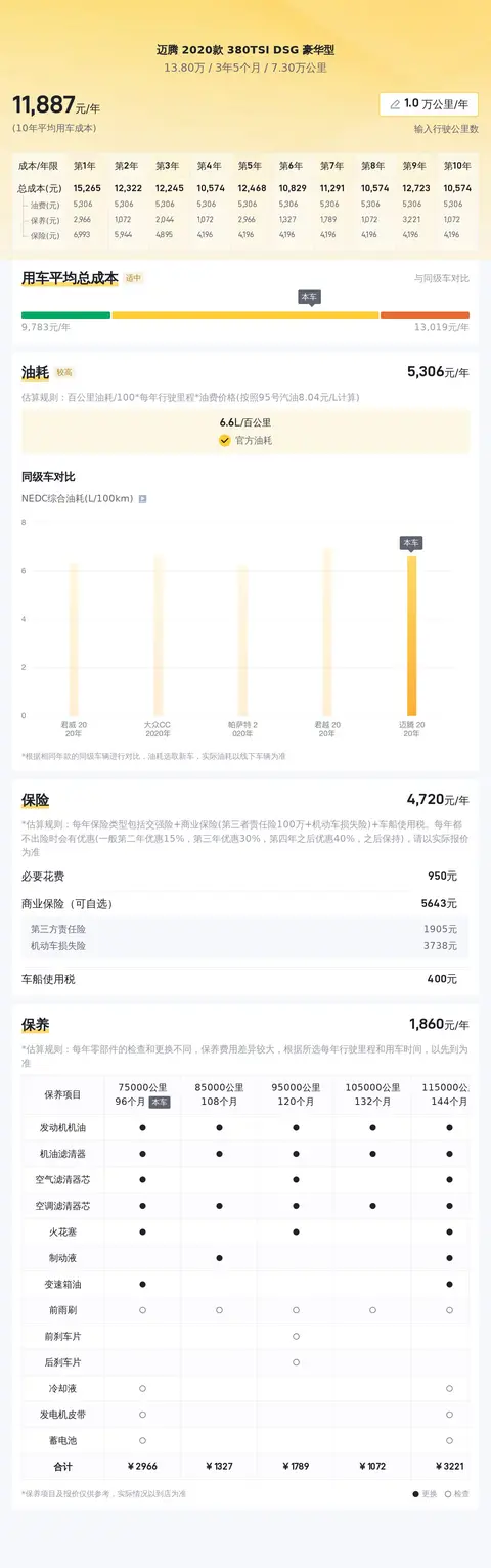 综上所述,这辆迈腾 2020款 380TSI DSG 豪华型是一辆值得考虑的二手车选择。它有着良好的车况,合理的市场价格,较低的用车成本,以及出色的性能、宽敞的空间和丰富的配置。对于正在寻找一款高品质B级车的消费者来说,这辆迈腾无疑是一个不错的选择。需要注意的是,该车目前未提供详细的检测报告,潜在买家在购买前应当向卖家了解具体的车况信息,或者请求卖家提供第三方检测报告,以确保车辆的实际状况符合个人期望。