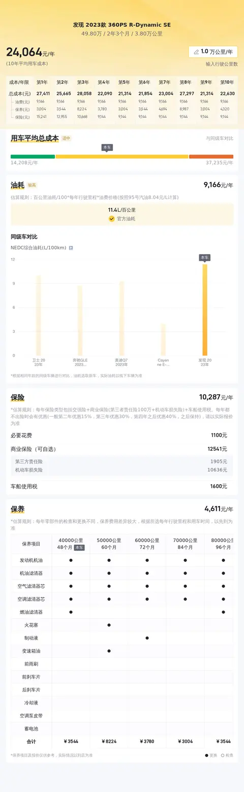 用车成本方面,按一年20000公里路程计算,该型车每年燃油、保险及保养的综合用车成本约24180元,具体费用要看用车频率及使用环境而定。