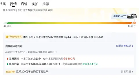 依据目前的市场行情,结合这辆车的具体情况,该车在二手车市场上的售价预计还有一定的降价空间。关于价格影响因素方面,这辆车的里程,多于均值2.7万公里,-16400元,车龄,多于均值0.5年,-13600元,过户次数,少于均值0.2次,+1400元,颜色,深灰色,-1351元。