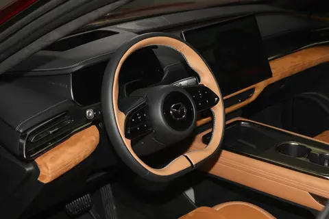 在新车内部,马自达EZ-6在材质选择和工艺处理上都展现出了较高的水准,在大部分驾乘人员能触摸到的位置,车辆都采用了皮质软包处理,触感细腻舒适,同时具有良好的耐磨性和透气性。前排中央区域的设计尤为精致,采用了银色的包边和哑光饰板的平铺,不同材质通过巧妙的覆盖面积和每个位置的接触面积设计,实现了无死角的包覆效果。另外,银色包边的宽度约为15厘米,其光泽度适中,为内饰增添了一份时尚感和精致感。