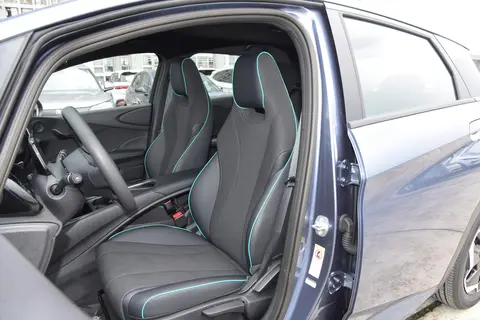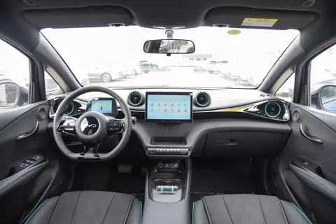 封闭式的中网与两侧大灯融为一体,悬浮式的车顶搭配蓝色的装饰条和花瓣式的轮毂,看上去较为时尚。