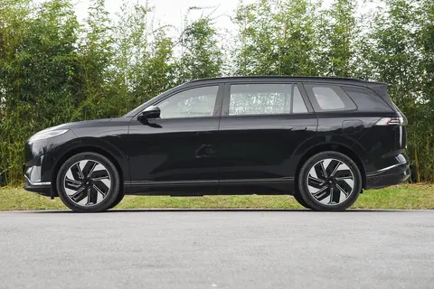 奕派eπ008五座版的车身侧面线条流畅而富有力量感,宛如一道流动的艺术品。隐藏式门把手与半悬浮式车顶巧妙地融合在一起,营造出一种轻盈、动感的视觉效果,增强了车辆的运动气息。21英寸的大尺寸轮毂,不仅提升了车辆的运动感,更带来出色的操控性和稳定性,让车辆在行驶过程中更具信心。车顶的黑色行李架与车窗周围的黑色饰条,巧妙地勾勒出车身线条,彰显了车辆的时尚感。即便从远处观望,整车的比例也十分协调,没有一丝臃肿感,尽显精致与动感并存的魅力。