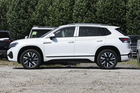 从侧面观察,探岳的车身线条流畅且具有丰富的力量感,其整体尺寸为4593×1860×1665毫米,轴距则达到2731毫米,展现出一种高大而沉稳的姿态。车配备的19英寸轮毂与黑色包围的轮眉相得益彰,营造出动感的视觉效果。贯穿车身的腰线与镀铬装饰线相辅相成,并与黑色裙边形成呼应,彰显出层次感与时尚气息。此外,车顶的镀铬行李架在实用性与美观性之间巧妙地找到了平衡,为整车增添了更多的实用价值与视觉吸引力。