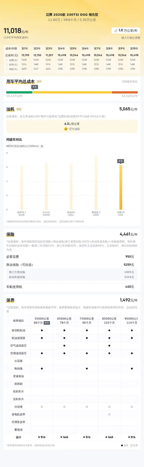 当前市场行情显示,这款迈腾的二手车价位在12.5万至15.01万之间。根据估算,该车6年平均用车成本约为11472元/年,相对合理。