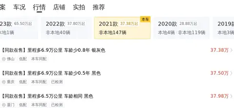 按照惯例,我们先来了解下车辆的基本信息,该车的表显里程为2万公里,该车2021年1月在佛山上牌,至今0过户,二手车报价42.8万,新车指导价69.99万,比新车便宜27.19万。