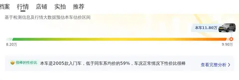 发现 2005款 4.0 V6 HSE的市场行情价是6.23万-10.55万,它的报价则是11.80万,报价高于市场行情,价格上不占优势。