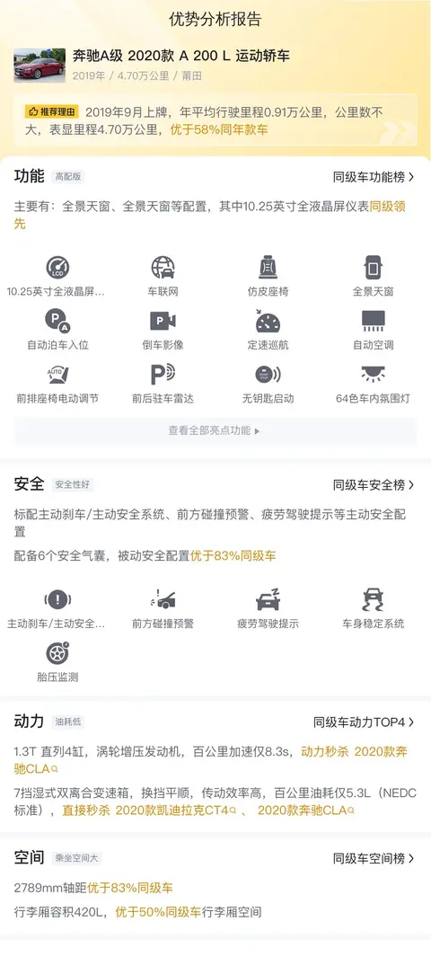 综上所述的新车含税价、用车成本、市场行情、优势分析、同款比价等数据仅供参考。在配置部分,因为二手车非标品,车辆可能会存在配置改装的情况,具体车况信息需要线下结合车辆实际情况进行综合参考。