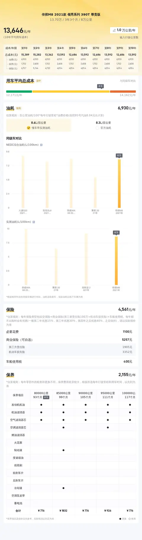 用车成本方面,按一年行驶一万公里计算,该型车每年燃油、保险及保养的综合用车成本约13704元,具体费用要看用车频率及使用环境而定。