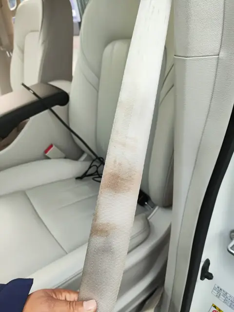 除了外观检测,在内饰检测中,该车还是有瑕疵的,具体为安全带有使用痕迹。其实这项瑕疵抛开事故、泡水等自然灾害不说,单纯从日常使用角度来说,这个属于正常现象,毕竟车子用了几年,有使用痕迹也是情理之中。