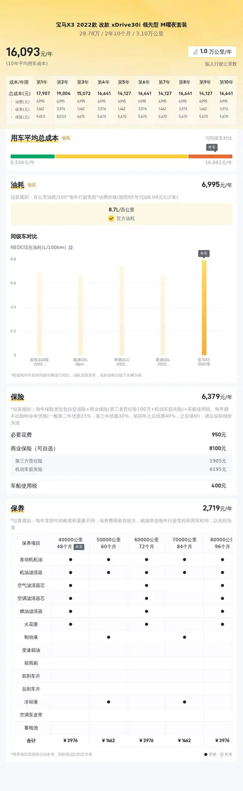 接下来,我们将综合分析该车的使用成本,包括保险费用、保养费用及油耗成本,为您提供一个大致的年均用车成本估算,帮助您更全面地了解拥有这辆车所需的经济投入。