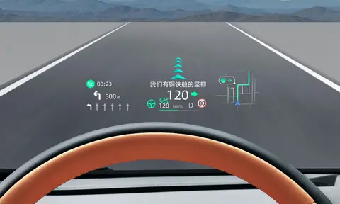 环绕式台面,中部点缀金属饰条贯穿座舱,其余地区用皮面材料包覆起来。配50英寸的AR-HUD抬头显示,带AR视觉算法,前方道路规划清晰,拥有7种自定义组合投投屏模式,向日葵15.4英寸中控屏,有左右各15°的旋转。支持Hicar、Carlink、T-link手机互联映射、微信无感互联、OTA升级等。
