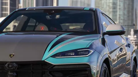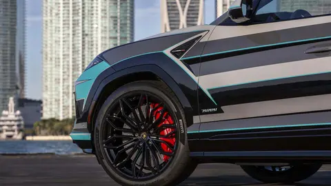 这台兰博基尼Urus(图片|配置|询价) SE亮相于迈阿密巴塞尔艺术展。这台车的外观涂装是由兰博基尼内部的Ad Personam集团完成,设计师强调了标准灰色外观,突出的条纹主要由黑色和浅灰色组成,仅此一台。