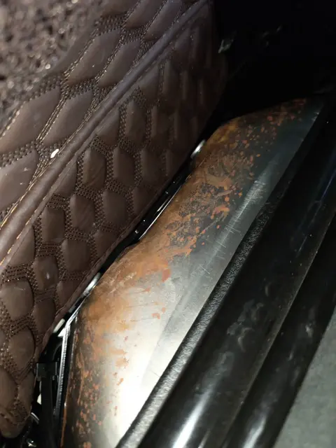在内饰检测部分,经过对内饰和主要功能检测,有1项问题需注意,具体是副驾座椅滑轨 锈蚀、主驾座椅滑轨 锈蚀。