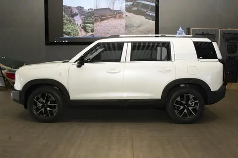 外观造型上,将硬派越野与时尚元素良好融合。整车线条硬朗,充满力量感,给人一种强烈的视觉冲击。车头的五孔格栅通过全新的手法演艺,形成了既熟悉又时尚的感觉。采用了最新的家族式“五阙星环”大灯设计,内部由五组分段式灯带组成,两端拥有圆眼灯组。车身侧面线条简洁流畅,为方盒子SUV,造型硬朗,黑色的轮眉和侧裙增加了车辆的运动感,配规格为235/65 R18的轮胎。LED尾灯组设计与BJ40异曲同工,垂直排列的尾灯由黑色面板进行衔接,与前保险杠相互呼应,增强了车尾的硬派气息。