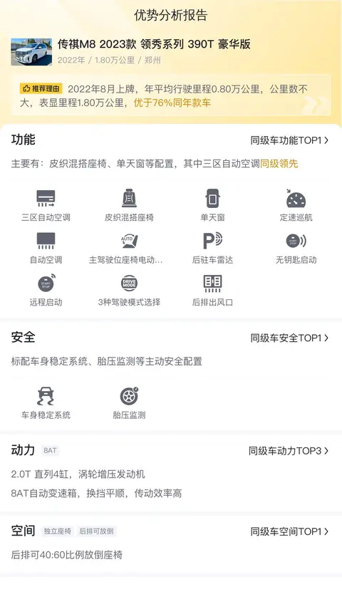 综上所述的新车含税价、用车成本、市场行情、优势分析、同款比价等数据仅供参考。在配置部分,因为二手车非标品,车辆可能会存在配置改装的情况,具体车况信息需要线下结合车辆实际情况进行综合参考。