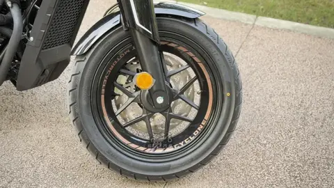 基于复古街车的定位,车架刚性跟运动车型相比强度没有那么出色,属于一个有韧性的表现。左右快速变向没有即将亮相的RA600那么灵活。