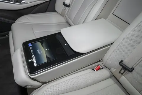 腾势Z9 DM的内饰主要突出的是科技感,其中前排所配备的13.2英寸全液晶仪表和副驾屏+17.3英寸2.5k中控屏组成的三大屏格外吸睛,为了实现前后排豪华体验平权,其前排座椅的后背上安置有7+12.8英寸的液晶屏,可用于办公、娱乐和控车。另外再加上7英寸扶手屏、流媒体后视频等多个电控硬件,腾势Z9 DM整车实现了同级鲜有的11屏互动。