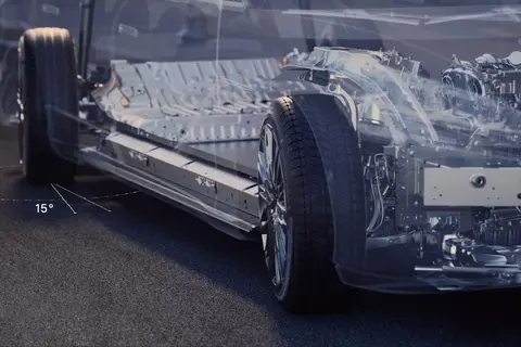 另外,在底盘上,腾势Z9 DM还运用到了易三方和云辇技术,能够通过车身搭载的雷达去扫描前方路况,并结合软件运算出合理的底盘矢量控制,以达到稳定车身姿态的作用,在开启iCVC功能后,车辆灵活度增加,蛇形工况最大通过速度提升9.26%,让驾驶变道过弯更从容平稳,在我们实际试驾过程中也能很明显的感知到,车辆在高速过弯的时候,方向盘阻尼灵敏的同时侧向倾转幅度较小。并且,该车还带有高速爆胎稳定控制系统,就算在140km/h的时速下爆胎,该系统也能抑制住非预期内的车辆横摆,横摆风险降低47%,提高驾驶安全性能。