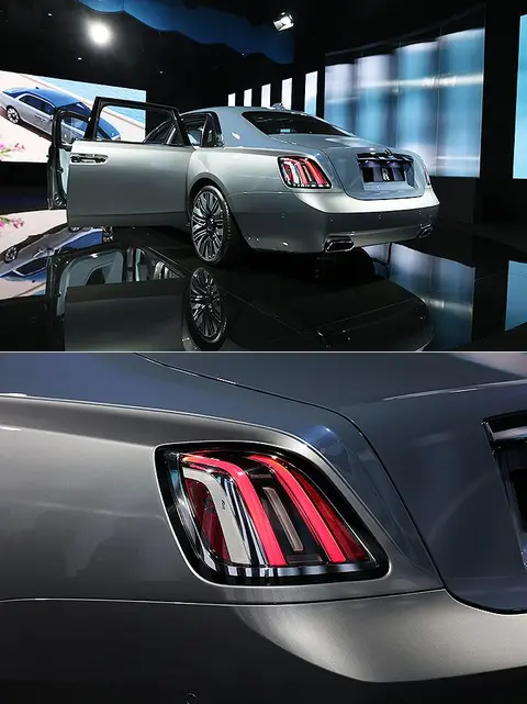 这么说好了,以前我们看到 Ghost,你会觉得它是昂首的,它是挺拔的,但我们都知道,买 Ghost 的车主跟库里南很多都是自驾属性,其实他们并不希望开这辆车的时候像个司机,所以现在古思特系列 II 的车头,已经变成一种随时向前俯冲的姿态,更象是西装暴徒的视觉效果。